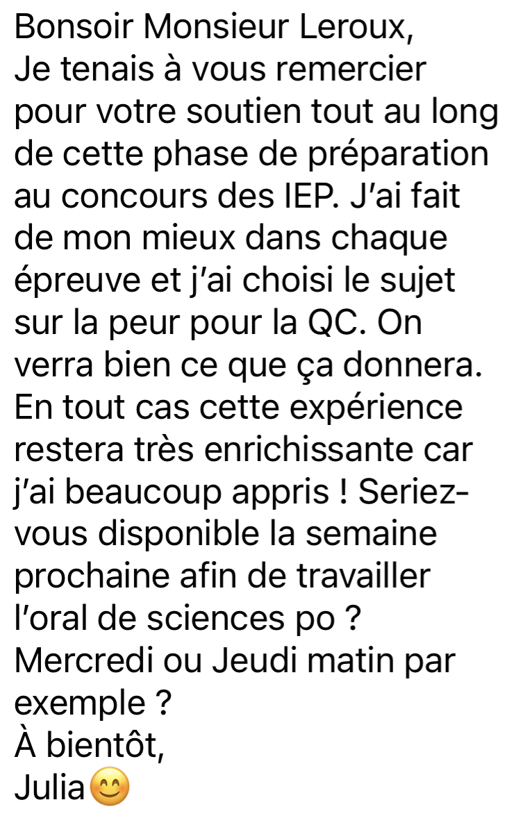 4. Si tu es intéressé et qu’il reste encore des places alors tu pourras bénéficier de mon accompagnement personnalisé au concours des IEP