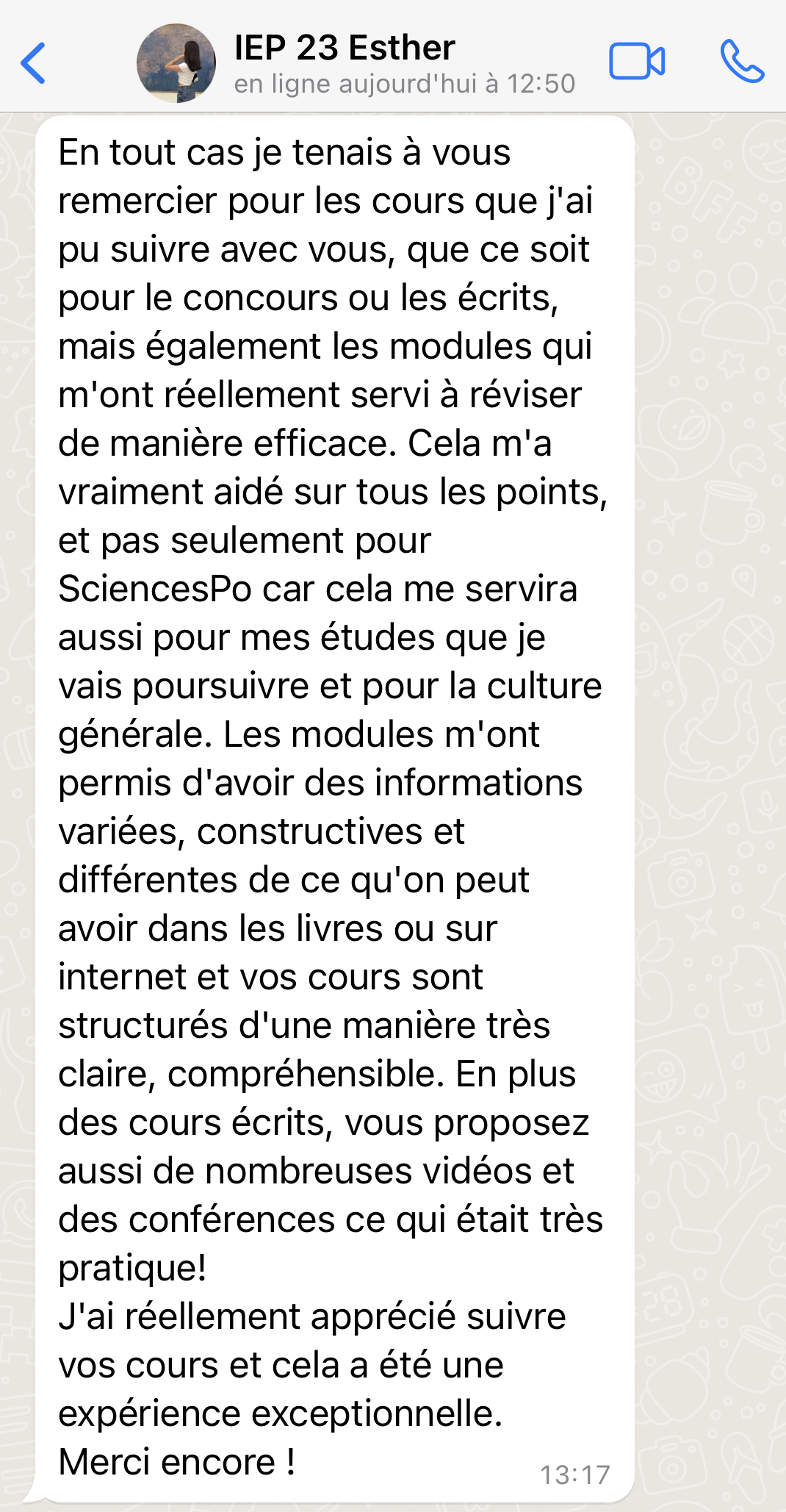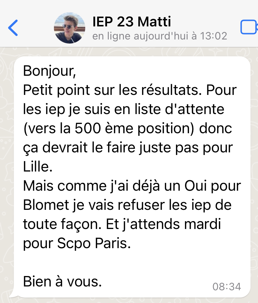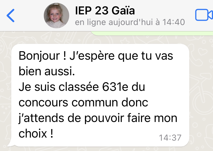 Tout au long de l’année, je suis disponible par whatsapp pour répondre à tes questions mais aussi t’informer des dates clefs à respecter et autres infos pertinentes relatives au concours.