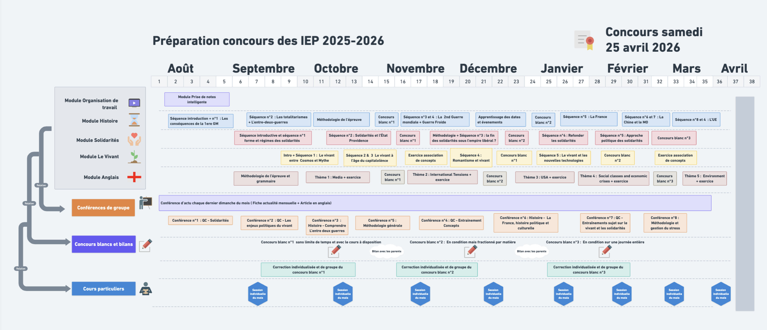 Tu sauras exactement quoi faire tout au long de l'année afin de concilier le travail de la préparation avec tes cours.
